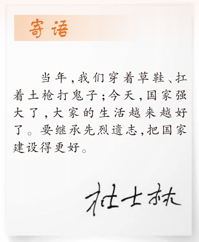 當年盼望的好日子已成為眼下的日常生活,杜士林滿心欣慰更滿懷期待,“好日子是戰(zhàn)士們用鮮血換來的。我們要保持艱苦奮斗的精神,珍惜現在的美好生活。”杜士林說。