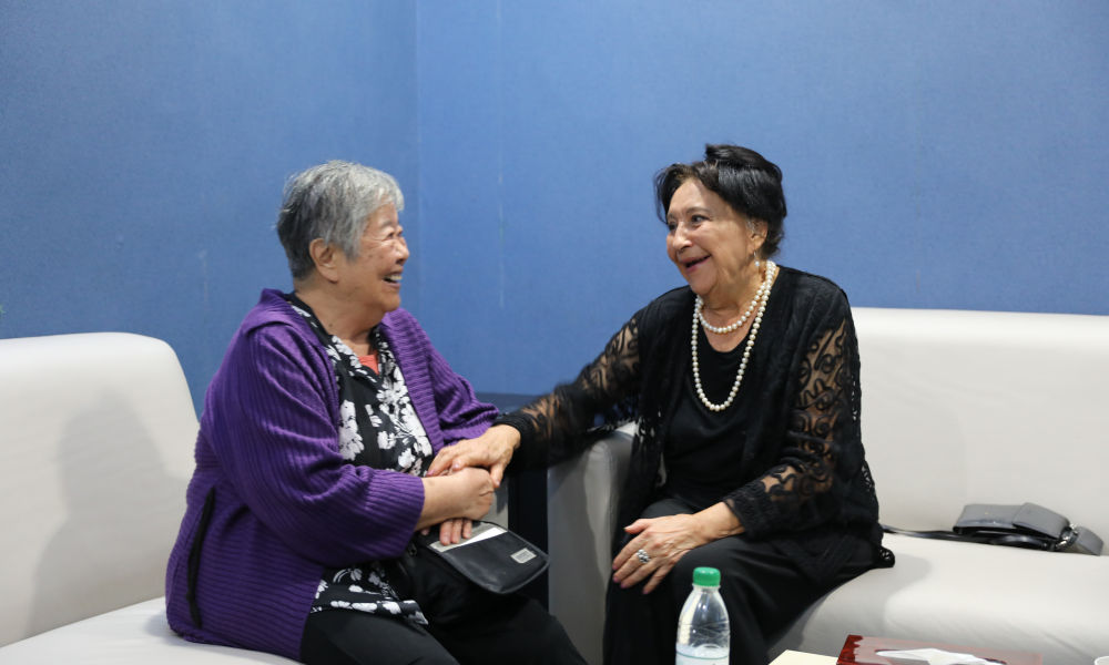 2024年10月9日,“人民音樂(lè)家”冼星海之女冼妮娜(左)和哈薩克斯坦音樂(lè)家拜卡達(dá)莫夫之女拜卡達(dá)莫娃闊別5年后在武漢約見(jiàn)。新華社發(fā)(劉天一攝)