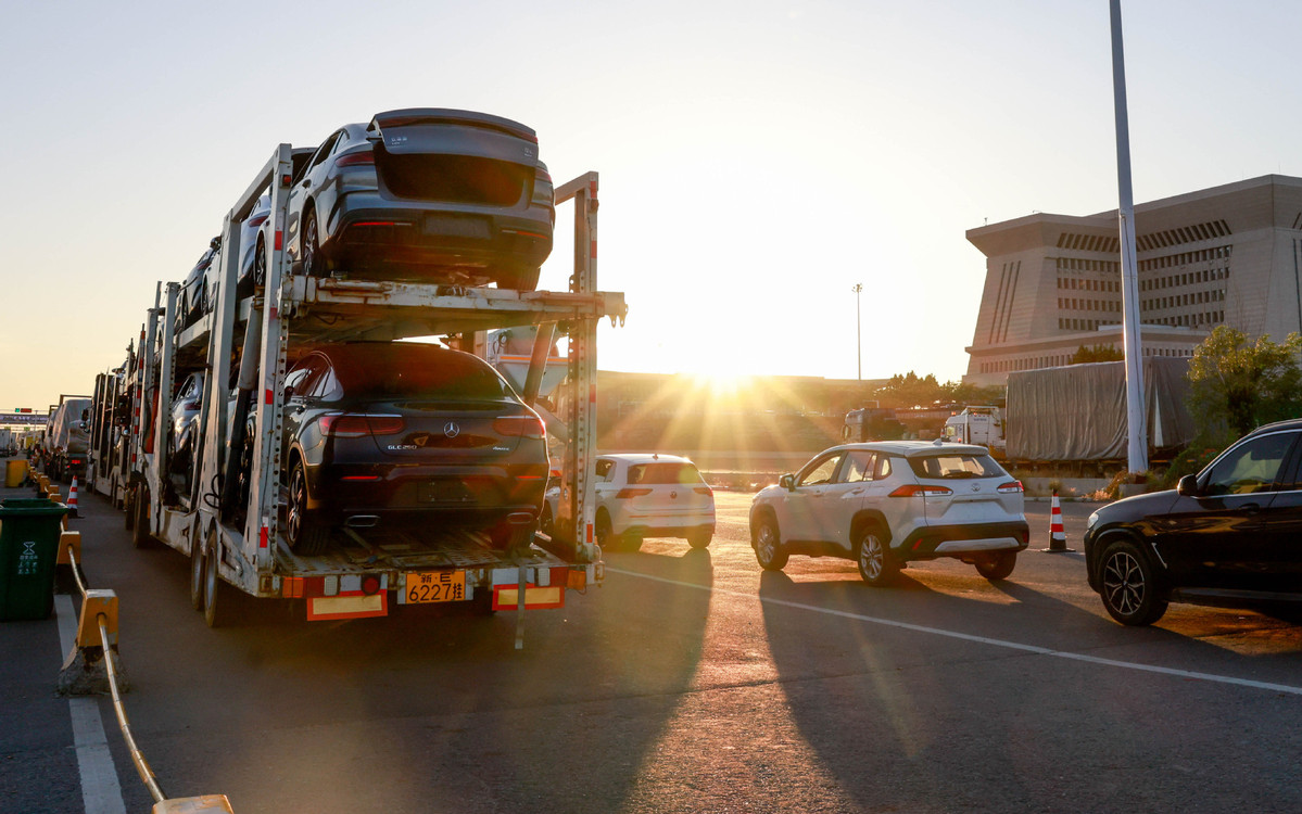 這是2025年5月27日在新疆霍爾果斯公路口岸拍攝的等待驗放的車輛。(圖片來源:新華社)