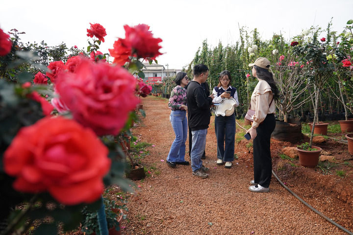 2025年4月11日,花商在云南昆明斗南一個花卉基地內討論采購價格。新華社記者 陳欣波 攝