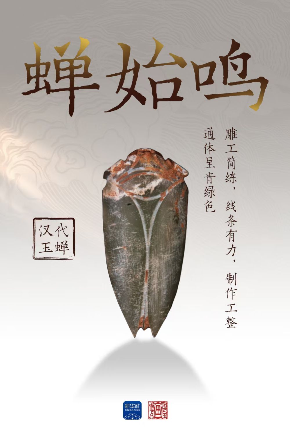 這件漢代玉蟬通體呈青綠色,盛夏的氣息撲面而來?!抖Y記·月令》記載:“仲夏之月,蟬始鳴”,古人發(fā)現(xiàn)夏至之日陽氣達到極盛,蟄伏地底多年的蟬若蟲會破土羽化宣告盛夏來臨,這是自然界的昆蟲“節(jié)氣預報”。