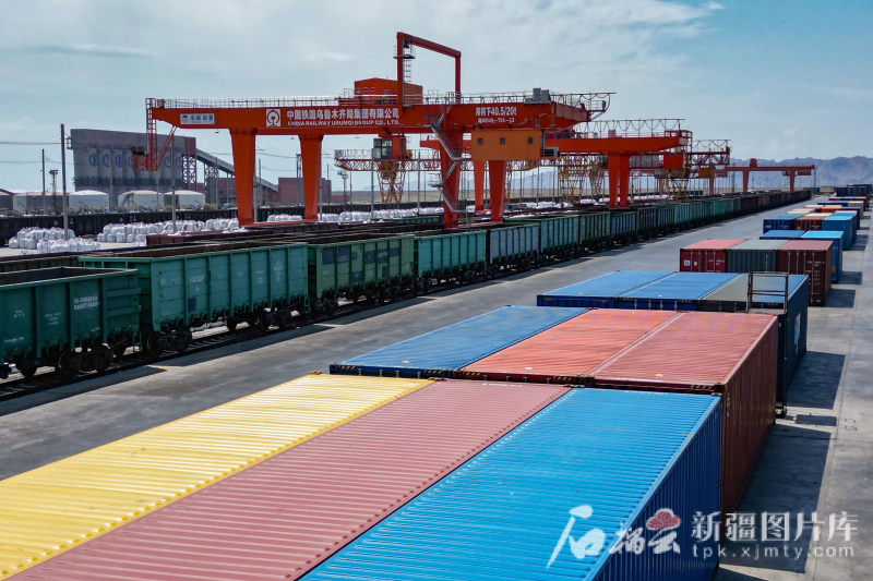 雄關(guān)矗立,汽笛聲聲。當(dāng)長風(fēng)掠過鋼軌,千年古道回響著新時(shí)代的鏗鏘足音。在阿拉山口站中歐(中亞)班列換裝區(qū),集裝箱方陣在吊臂間精準(zhǔn)流轉(zhuǎn),如跳動的音符譜寫著亞歐大陸的經(jīng)貿(mào)交響。這座向西開放的“黃金樞紐”,正以分秒必爭的效率律動,奏響中歐(中亞)班列馳騁新絲路的進(jìn)行曲——鋼鐵駝隊(duì)晝夜不息,為絲綢之路經(jīng)濟(jì)帶注入澎湃的時(shí)代動能。