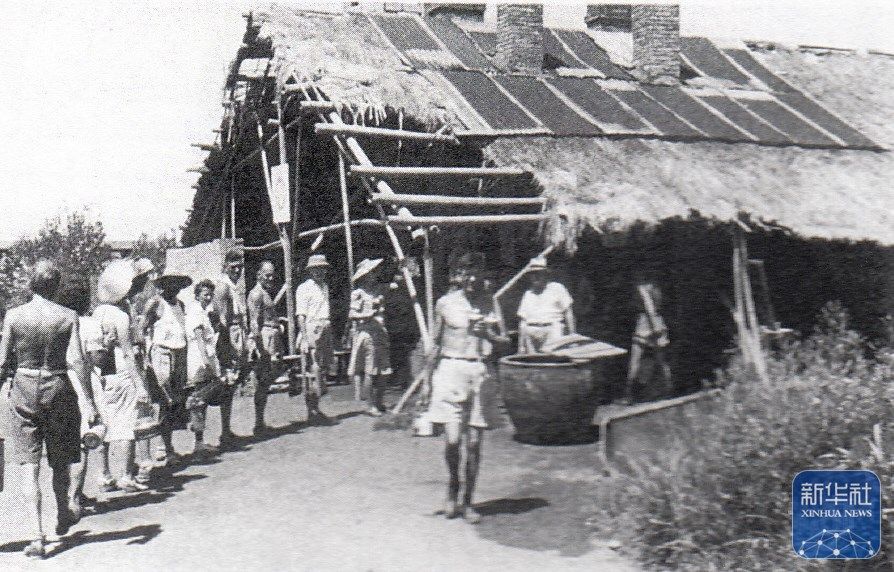 上海龍華集中營里,人們在排隊(duì)取水(資料照片)。新華社發(fā)(上海中學(xué)供圖)