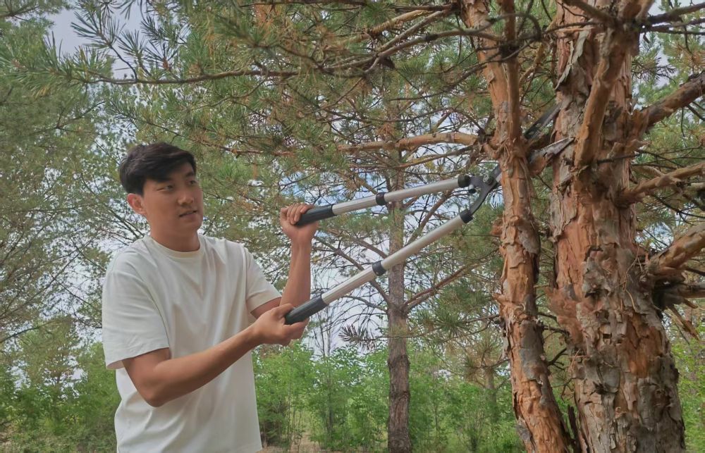 2017年,在爺爺?shù)膸ьI(lǐng)下,石健陽正式投身植綠事業(yè)。“過去沙害嚴重,老一輩治沙人最迫切的是要定住風沙,讓地面先綠起來,所以當時的樹種主要是生長快的楊樹?!笔£栒f,“幾十年過去,楊樹林老化嚴重,出現(xiàn)大面積枯死的情況。我們現(xiàn)在陸續(xù)對老化的林地進行樹種更換,補種四季常青、生命周期更長的樟子松,目前已經(jīng)補種了5萬畝?!?/p>
