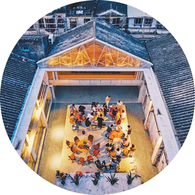 2015年,李繼津和合伙人看上了塘口舊墟兩處建筑,“原先是舊糧倉(cāng)周邊的五金廠、鐘表廠,雖然建筑很舊,但很有設(shè)計(jì)感,而且舊墟與周圍的村子距離很近,有做社區(qū)改造的潛力?!闭f(shuō)干就干,舊工廠逐漸被改造為時(shí)尚的青年社區(qū)空間——“塘口空間”,餐廳、青年旅舍、劇場(chǎng)、活動(dòng)空間等一應(yīng)俱全,舊工廠里原有的一些制造機(jī)械作為歷史記憶的“載體”也被保留下來(lái)?!敖ㄖ荒苊撾x鄉(xiāng)村。”李繼津說(shuō)。