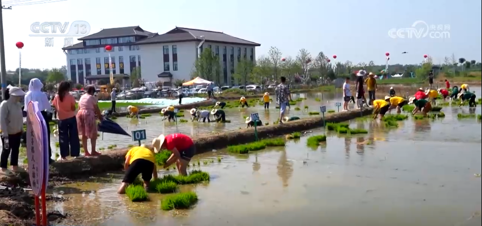 稻田中,插秧競賽如火如荼。競賽分為人工組比拼和機(jī)械競賽環(huán)節(jié)。游客可以加入到人工組比拼中,親子家庭與職工隊(duì)伍彎腰勞作,親身感受著古老的農(nóng)耕技藝,泥水四濺,歡笑聲不斷。而在機(jī)械競賽環(huán)節(jié),4位專業(yè)農(nóng)機(jī)駕駛員駕駛插秧機(jī)在田間精準(zhǔn)穿梭,高效作業(yè),現(xiàn)代農(nóng)機(jī)的高效與精準(zhǔn)展現(xiàn)得淋漓盡致。