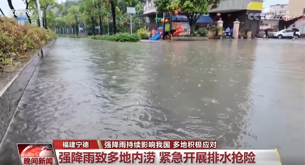 受臺風“丹娜絲”影響,從9日凌晨開始,福建寧德多地出現(xiàn)強降雨天氣。據(jù)統(tǒng)計,截至9日6時,寧德共有5個縣(市、區(qū))26個鄉(xiāng)鎮(zhèn)24小時累計雨量超過100毫米。其中,最大雨量出現(xiàn)在漳灣鎮(zhèn),達155.5毫米。受此影響,漳灣鎮(zhèn)多處出現(xiàn)積水內(nèi)澇,相關部門緊急開展搶險工作。