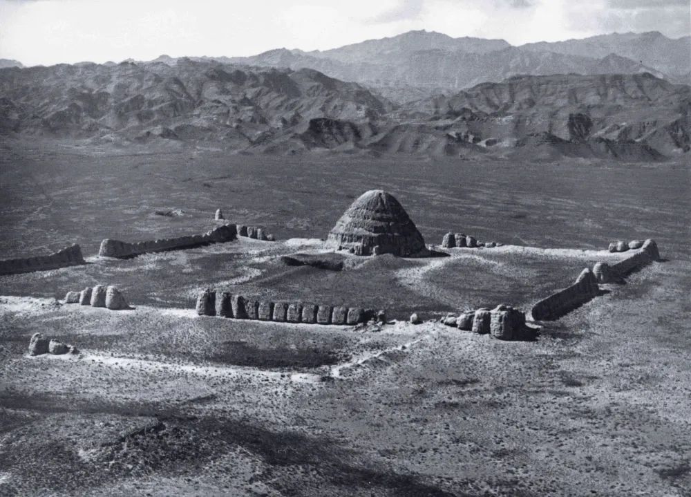 20世紀(jì)30年代,一位德國(guó)飛行員在寧夏銀川飛掠過賀蘭山。山前的幾個(gè)“土堆”兀然而現(xiàn),立刻引起了他的注意,他不由得用相機(jī)記錄下眼前奇景。