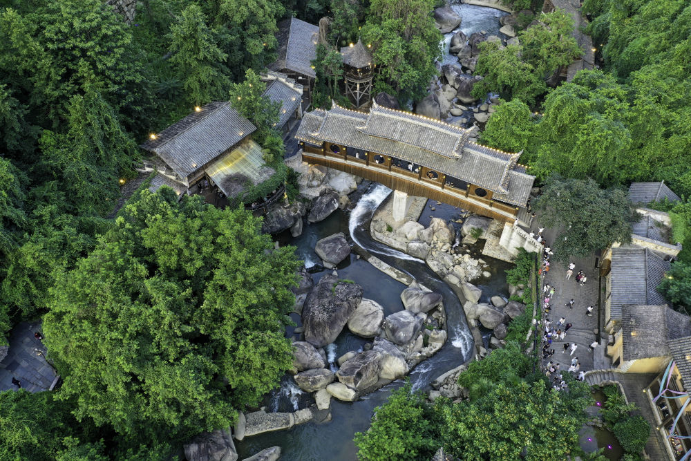 修復(fù)后的生態(tài)資源如何發(fā)揮經(jīng)濟(jì)效益?2010年,廣信區(qū)引進(jìn)九牛文旅集團(tuán),以峽谷漂流為旅游發(fā)展切入點,花費10多年時間一步步打造出一個集山水人文景觀、民俗體驗、活動演藝于一體的度假旅游區(qū)。九牛文旅集團(tuán)副總裁熊慧介紹,為了“給游客一個來的理由”,公司在110多米高的懸崖上凌空打造出“懸崖民宿”,客房的設(shè)計布局各不相同,房間地面不是傳統(tǒng)的地板,而是透明的懸空玻璃,游客站在床邊,低頭就能看到飛瀉的瀑布和流淌的溪水。