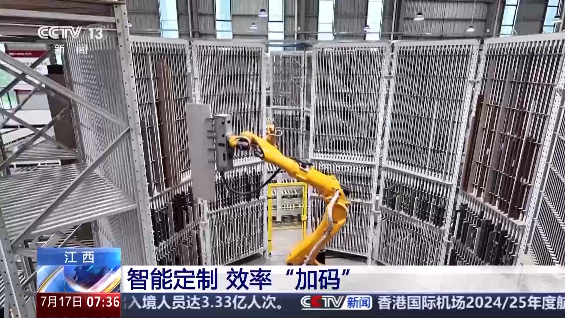 總臺央視記者 張琪:分揀機(jī)械臂正將加工好的木板快速存放在書本架上,這一個(gè)單元的書架可以存放480片部件板,打造10個(gè)柜子,夠一個(gè)家庭使用。