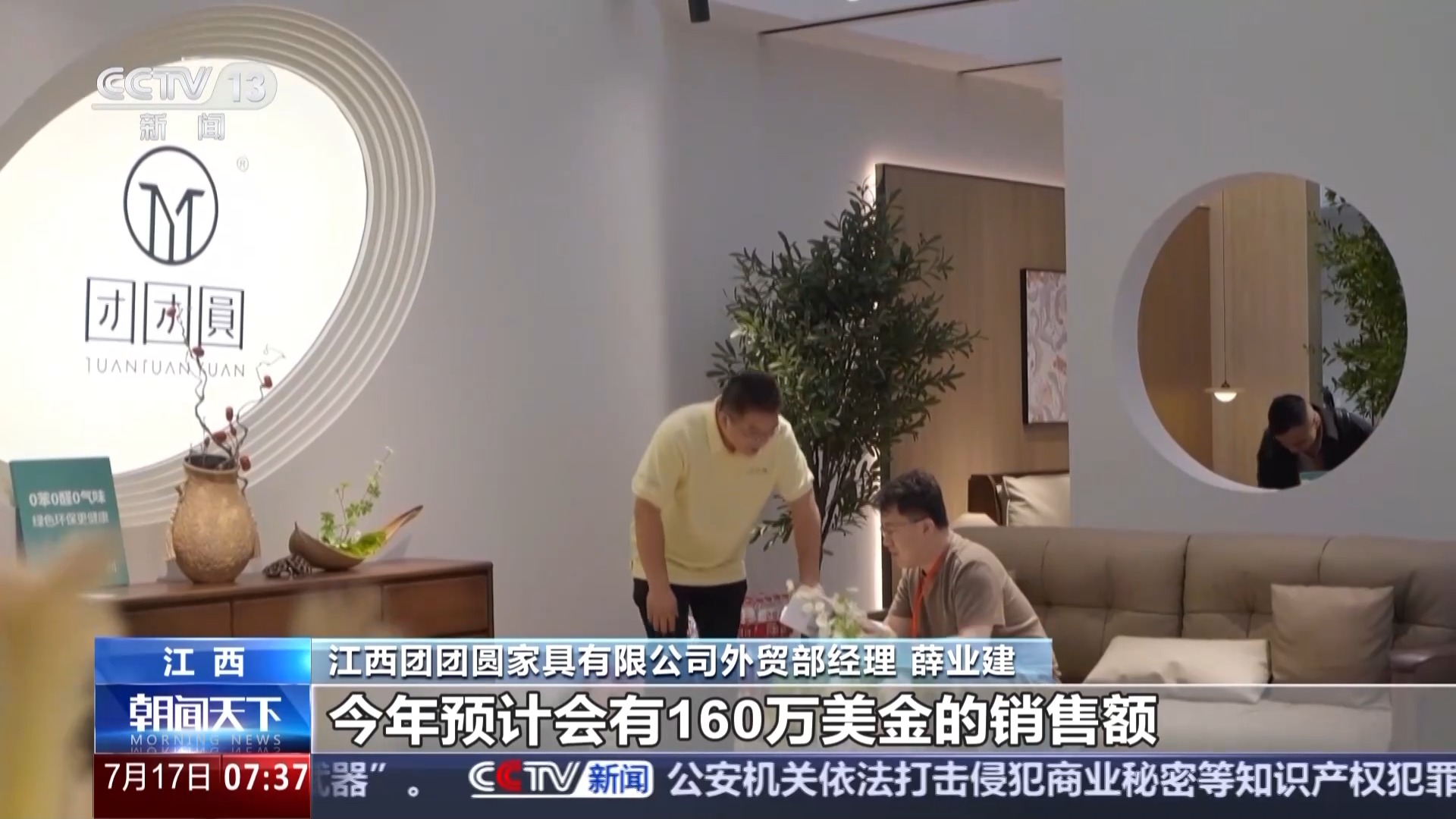 江西團(tuán)團(tuán)圓家具有限公司外貿(mào)部經(jīng)理 薛業(yè)建:家具在7月到11月是一個(gè)銷售旺季,今年預(yù)計(jì)會(huì)有160萬美元的銷售額。