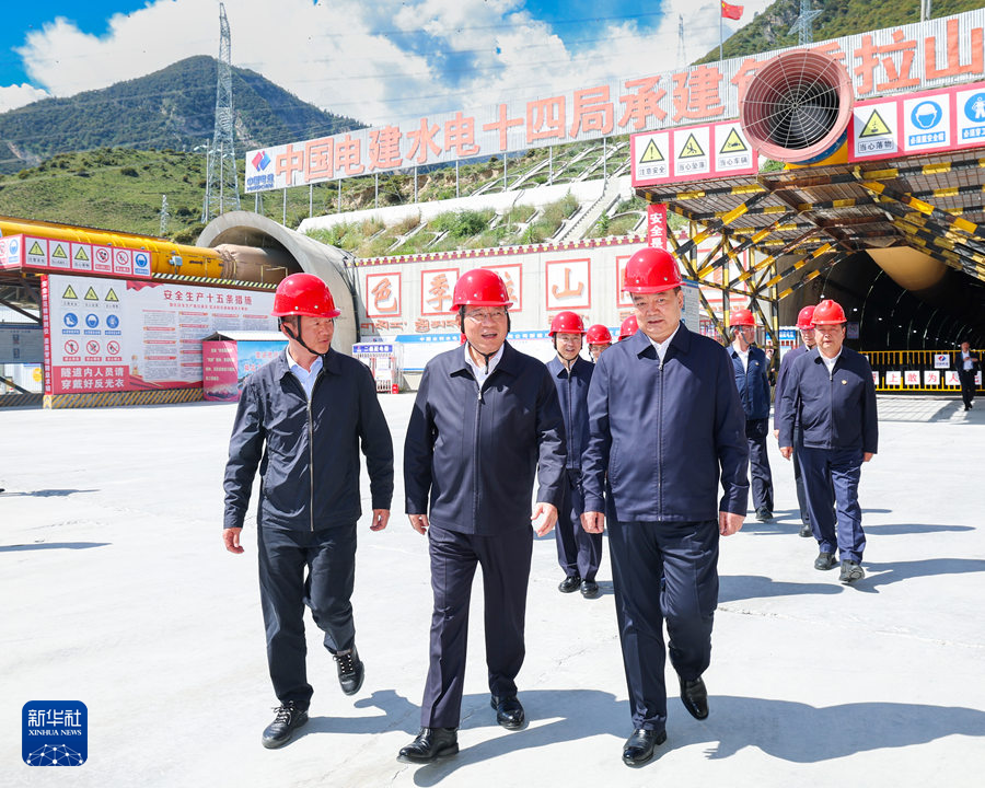 在林芝,李強(qiáng)首先來到川藏鐵路色季拉山隧道出口,察看隧道現(xiàn)場施工情況,了解建設(shè)進(jìn)展,與施工人員交流,對施工團(tuán)隊(duì)克服復(fù)雜地質(zhì)氣候條件艱苦作業(yè)、持續(xù)攻克工程建設(shè)難題予以高度贊許。他指出,川藏鐵路建成通車對于促進(jìn)西藏發(fā)展和民生改善意義重大。要始終把質(zhì)量和安全擺在第一位,堅(jiān)持科學(xué)有序施工,抓好全程質(zhì)量管控,確保工程經(jīng)得起歷史檢驗(yàn)。要加緊推進(jìn)電力、通信等配套設(shè)施建設(shè),做好后勤服務(wù)保障,為工程順利實(shí)施創(chuàng)造良好條件。在米林水電站壩址和雅尼濕地,李強(qiáng)察看施工裝備、鉆孔巖芯等,聽取雅魯藏布江下游水電工程開發(fā)、科技攻關(guān)、移民安置等工作匯報(bào),詳細(xì)了解濕地生態(tài)環(huán)境保護(hù)情況。他強(qiáng)調(diào),雅下水電工程體量大、周期長、影響遠(yuǎn),堪稱世紀(jì)工程。要積極應(yīng)用先進(jìn)技術(shù)、裝備、工藝、材料等,為高質(zhì)量建設(shè)提供有力支撐,并引領(lǐng)相關(guān)領(lǐng)域科技創(chuàng)新和產(chǎn)業(yè)創(chuàng)新。要格外重視生態(tài)保護(hù),確保生態(tài)環(huán)境不受損害。要細(xì)致做好移民搬遷安置工作,把推進(jìn)工程建設(shè)和促進(jìn)當(dāng)?shù)厝罕娋蜆I(yè)增收更好結(jié)合起來。要以高度的使命感和對歷史負(fù)責(zé)、對人民負(fù)責(zé)的精神,把雅下水電工程建成新時代的重大標(biāo)志性工程。
