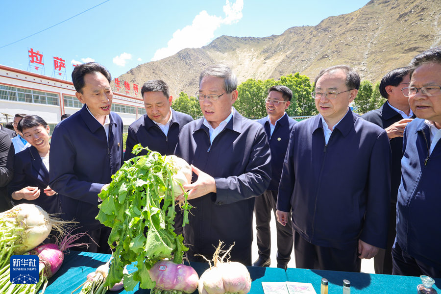在拉薩,李強(qiáng)來到曲水才納國家現(xiàn)代農(nóng)業(yè)示范區(qū),聽取自治區(qū)農(nóng)牧業(yè)產(chǎn)業(yè)發(fā)展、高原生物研究所建設(shè)等介紹,觀看示范區(qū)自產(chǎn)果蔬、高原特色食飲品、民族手工藝品等展示。他說,利用特色優(yōu)勢資源發(fā)展高原農(nóng)牧業(yè),是富民興藏的重要抓手。要加強(qiáng)農(nóng)牧業(yè)新技術(shù)示范推廣,努力在高原育種等方面取得新突破,依托現(xiàn)代農(nóng)業(yè)產(chǎn)業(yè)園、特色產(chǎn)業(yè)集群等推動農(nóng)牧業(yè)規(guī)?;⑵放苹l(fā)展。要培養(yǎng)更多懂科技、會管理的新型職業(yè)農(nóng)牧民,創(chuàng)新聯(lián)農(nóng)帶農(nóng)機(jī)制,更好帶動群眾致富。調(diào)研中,李強(qiáng)沿途察看南北山綠化工程,勉勵當(dāng)?shù)馗刹砍浞终{(diào)動各方面力量廣泛參與造林綠化,以良好生態(tài)環(huán)境惠及民生。