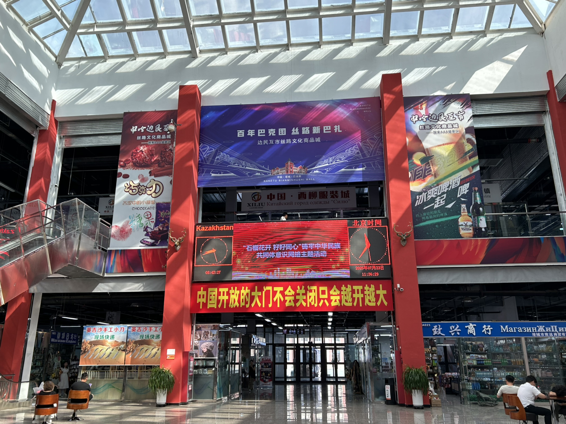 絲路文化商品城坐落于巴克圖口岸,是一座集批發(fā)零售、商品展示、商貿(mào)洽談、跨境電商、金融結(jié)算等五大功能為一體的現(xiàn)代化服務(wù)平臺。走進(jìn)商品城,仿佛置身于一個(gè)國際商品的海洋,來自哈薩克斯坦及周邊18國的進(jìn)口食品、日用品、化妝品等各類商品琳瑯滿目,應(yīng)有盡有,吸引著各地消費(fèi)者紛至沓來。
