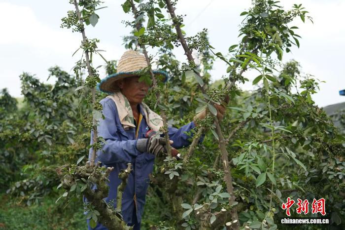 近日,重慶江津,椒農(nóng)采摘花椒。楊思琦 攝