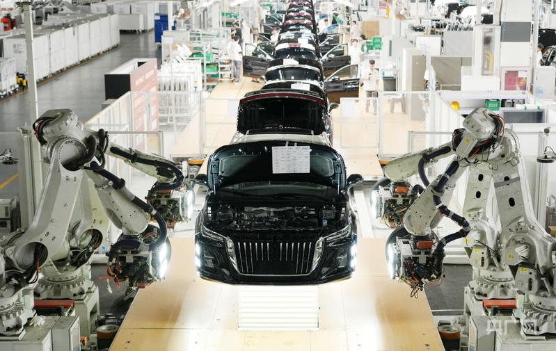 在中國一汽紅旗繁榮廠區(qū),14條自動生產(chǎn)線每天能裝配下線500余輛汽車,這一速度讓這座工廠穩(wěn)居國內(nèi)汽車制造第一梯隊(duì)。