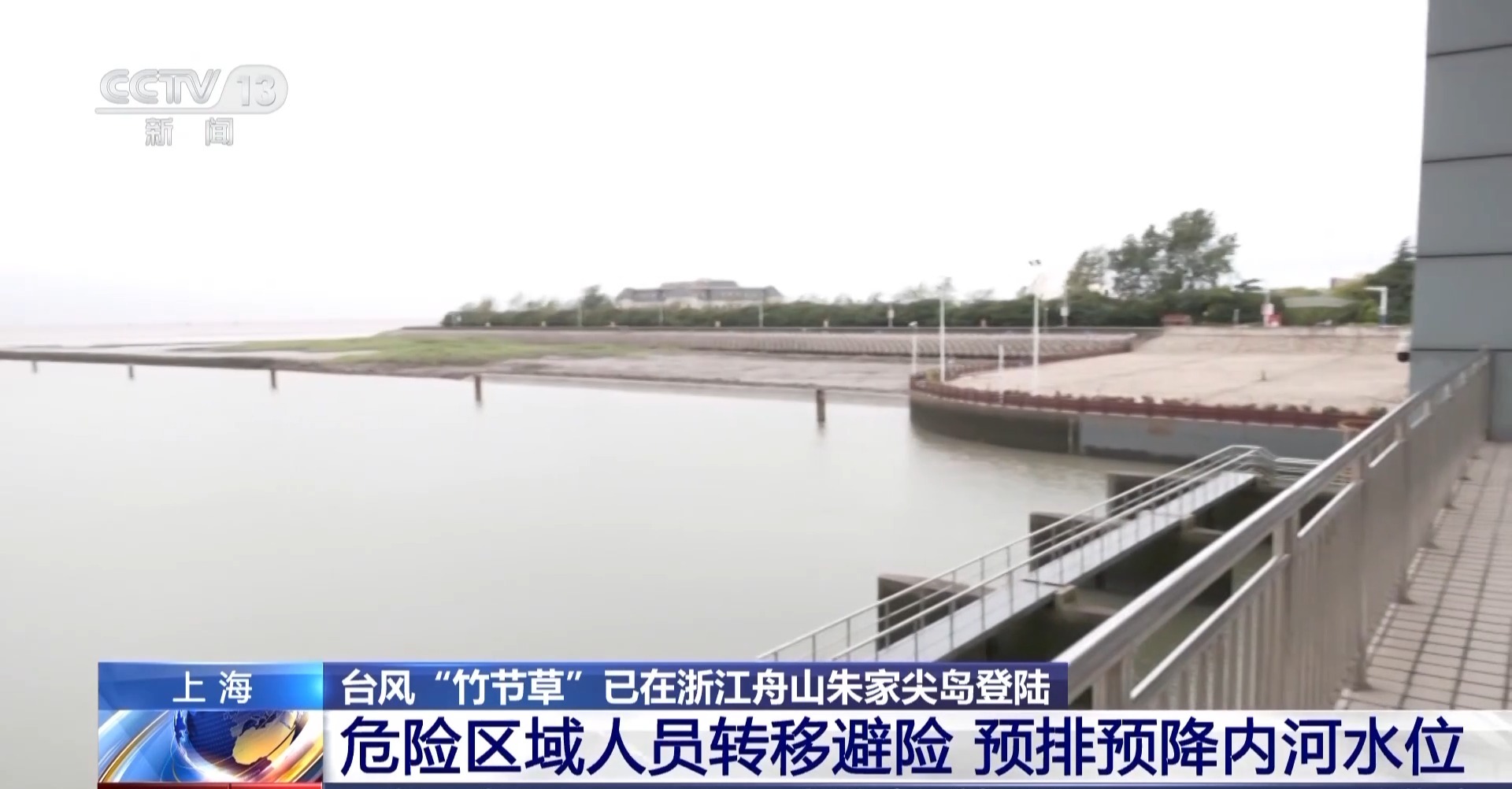總臺記者 張寄予:為應對臺風“竹節(jié)草”,上海市奉賢區(qū)金匯港南閘會進行開閘排水工作。這里一邊是內(nèi)河,一邊是杭州灣,當海水落潮的時候,海水水平面低于內(nèi)河水平面時,就會開啟閘口,利用水位落差自然排水。