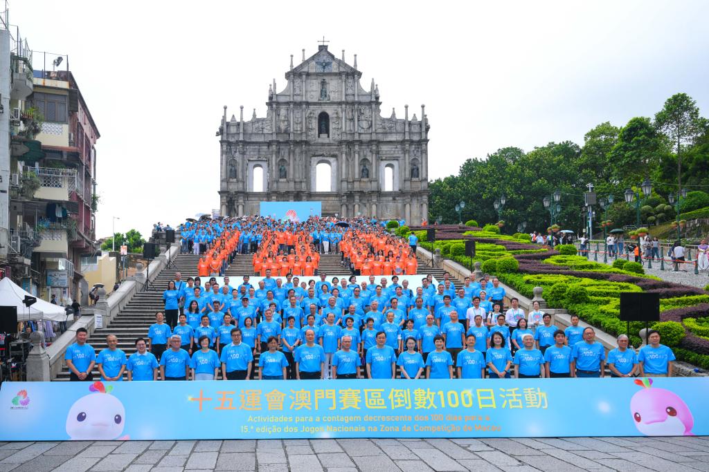 這是8月1日在澳門拍攝的第十五屆全國運動會倒計時100天慶?;顒蝇F(xiàn)場。新華社發(fā)(張金加攝)