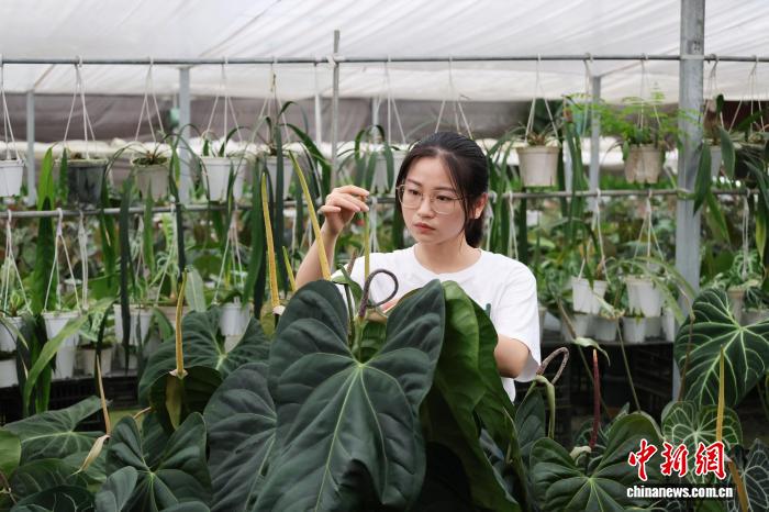 這位曾懷揣1萬元啟動資金的大學生,在園區(qū)婦聯(lián)創(chuàng)業(yè)扶持下,將天南星科植物育種做成千萬產(chǎn)業(yè)?!鞍滋煜绿锱嘤淦罚雇碇辈シ窒碇R”,她的村播新業(yè)態(tài)帶動20多位農(nóng)村婦女就業(yè),讓科技賦能的雨林植物遠銷海外。