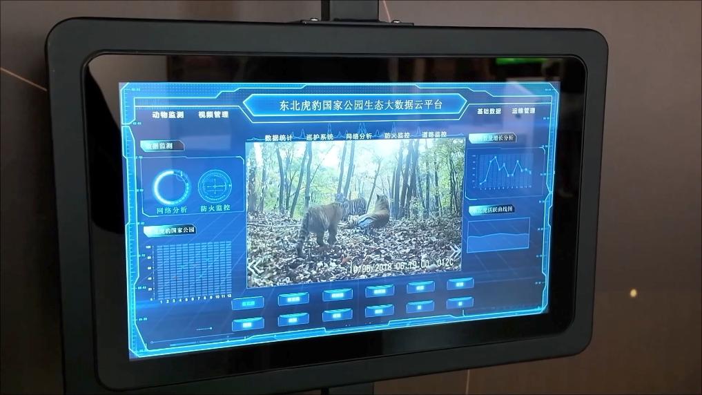 在吉林省琿春東北虎豹自然科普館,東北虎豹國家公園的“天空地一體化監(jiān)測(cè)體系”通過智能紅外相機(jī)、衛(wèi)星遙感、無人機(jī)等技術(shù),回傳野生動(dòng)物活動(dòng)影像。