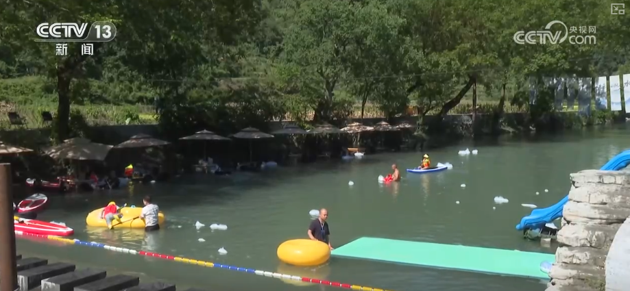 在湖南吉首,洽比河旅游公路串聯(lián)起深山中的9個傳統(tǒng)苗寨。游客們自駕而來,沿河溯溪露營,體驗水上項目,或躲進竹椅遮陽傘下,感受清涼愜意。