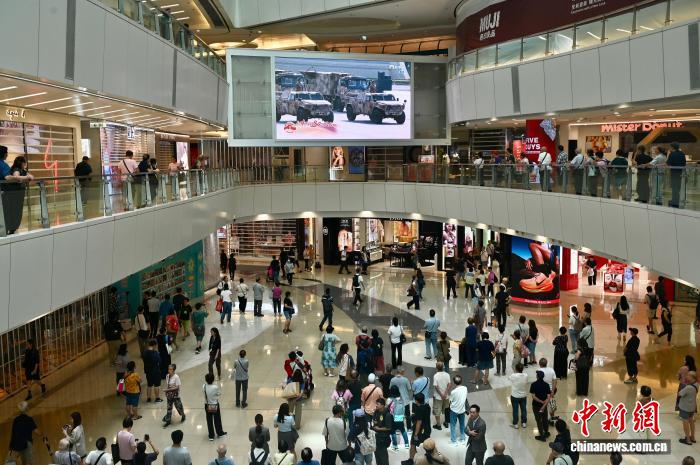 在香港的不少商場(chǎng)里,許多市民也被大屏幕上的直播所吸引,加入觀看行列。香港市民陳染說,她特意帶孩子去大屏前,一同感受這承載著歷史重量的時(shí)刻。