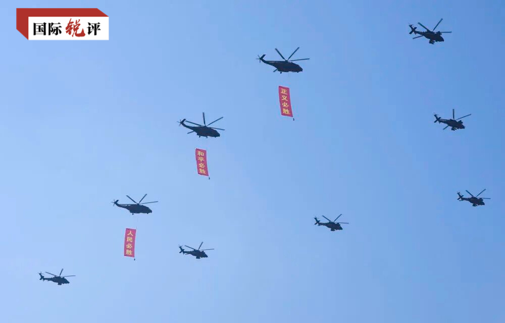 閱兵儀式上,一個(gè)細(xì)節(jié)引人關(guān)注:3架直升機(jī)分別懸掛“正義必勝”“和平必勝”“人民必勝”的條幅飛過(guò)天安門(mén)廣場(chǎng)。這“三個(gè)必勝”既是歷史啟示的偉大真理,也是對(duì)當(dāng)下和未來(lái)的重要啟迪。