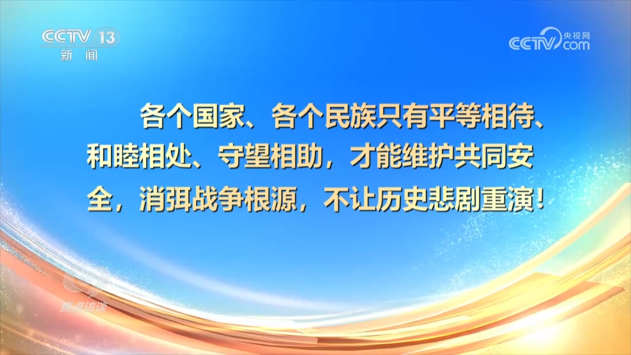 楊鳳城:“總書記在這次紀念抗戰(zhàn)勝利80周年的講話,還有過去的講話,都特別強調(diào)我們銘記歷史,緬懷先烈,不是為了延續(xù)仇恨,是為了珍愛和平,聚焦發(fā)展。中國共產(chǎn)黨不僅是這么說的,也是這么做的。我們提出了全人類共同價值,提出了構(gòu)建人類命運共同體,實踐‘一帶一路’,說明什么?說明中國共產(chǎn)黨從中國人民,從自身的經(jīng)歷中,深深體會到和平的可貴,深深認識到發(fā)展的重要?!?/p>