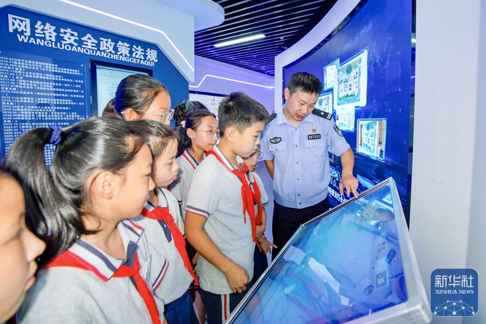 9月15日,在江蘇省泰興市襟江小學(xué)教育集團佳源校區(qū),泰興市公安局城北派出所民警通過互動方式在給學(xué)生講解網(wǎng)絡(luò)安全知識。新華社發(fā)(顧繼紅攝)