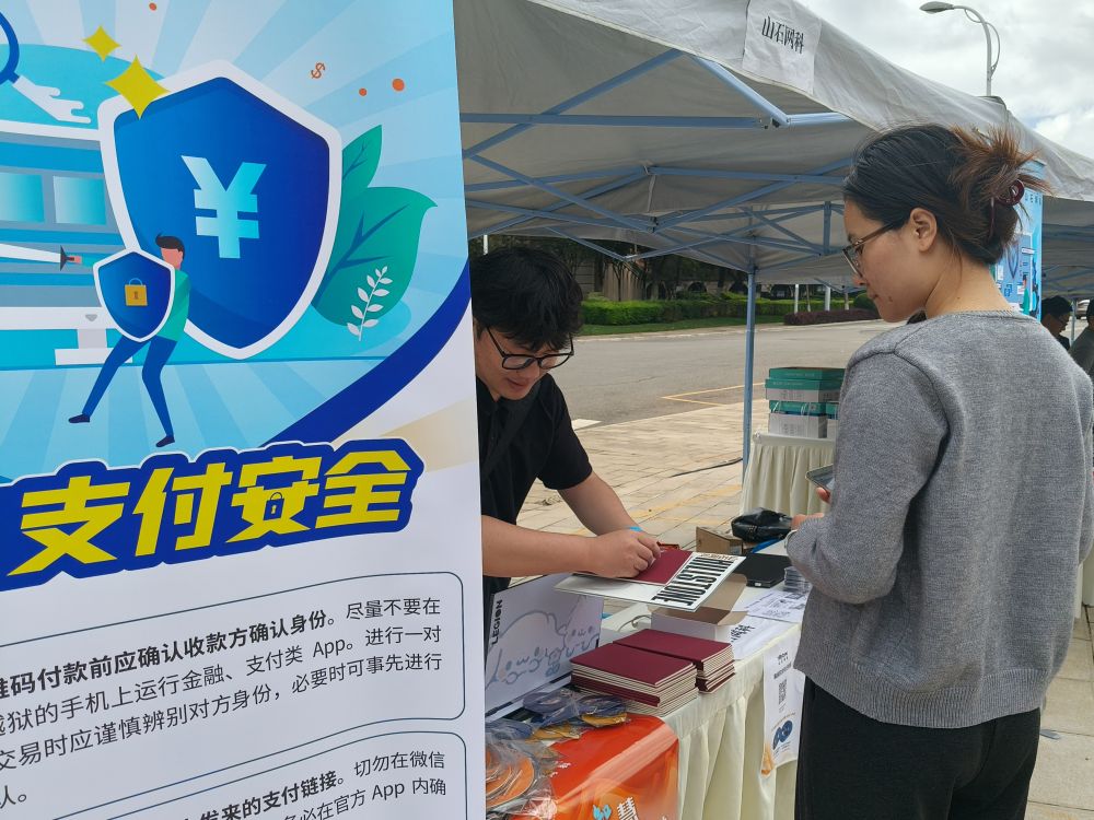 校園的露天廣場上還安排有網(wǎng)絡(luò)安全知識趣味問答活動,吸引學(xué)生參與,讓他們在輕松愉快的氛圍中鞏固了反詐知識。還有工作人員向路過的學(xué)生發(fā)放反詐宣傳手冊。