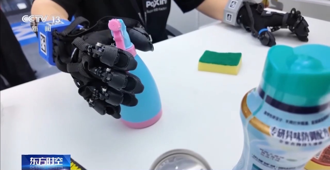 就像大語言模型依賴大規(guī)模文本語料,機(jī)器人要從“會想”邁向“會做”,同樣離不開海量真實(shí)世界的經(jīng)驗(yàn)數(shù)據(jù)做訓(xùn)練。能實(shí)時記錄觸覺、力覺和動作細(xì)節(jié)的特制“數(shù)采手套”,就是連接真實(shí)世界和數(shù)據(jù)世界的介質(zhì)。