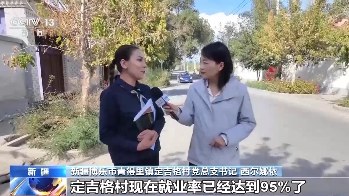 新疆博樂市青得里鎮(zhèn)定吉格村黨總支書記 西爾娜依:定吉格村現(xiàn)在就業(yè)率已經(jīng)達到95%了,相當于每個人都有活干,每個人都有錢掙。