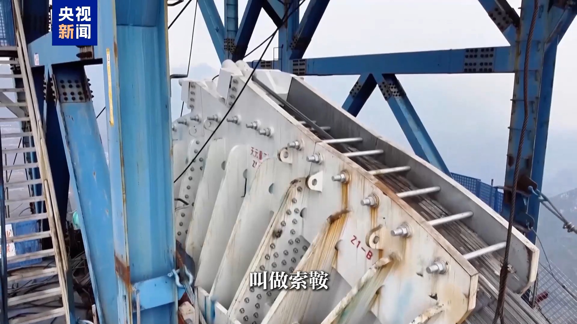 大橋上青綠色的主纜就像兩根堅實的扁擔,牢牢地承托著橋面上的荷載。如果說主纜相當于扁擔,那么橋兩側(cè)橋頭的主塔就像是扛著扁擔的肩膀。為了給“肩膀”減負,專門特別制作了索鞍,它就像在雙肩之上蓋上了一層海綿墊,起到緩沖的作用。