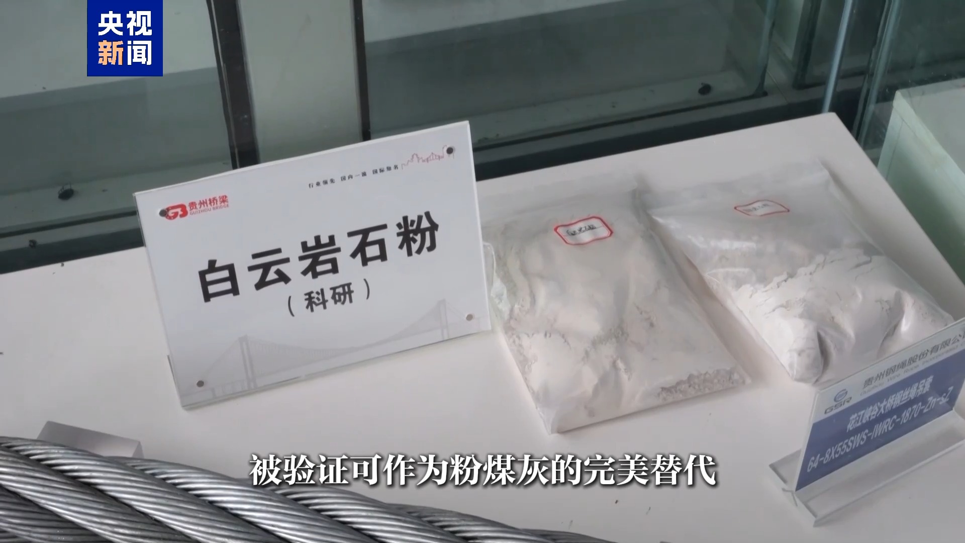 花江峽谷大橋單個錨碇的混凝土澆筑量就達16萬立方米。但在施工過程中,受到材料短缺、運輸難度大等多重因素的制約,澆筑所必須用到的粉煤灰嚴重緊缺,施工進度一度停滯。面臨著工期的壓力,工程團隊在堆積如山的工程廢料中發(fā)現(xiàn)了轉(zhuǎn)機,路基挖出的白云巖碎石,經(jīng)過超細研磨后的石粉,被驗證可作為粉煤灰的完美替代,在特定配比下甚至能達到更好的澆筑效果。