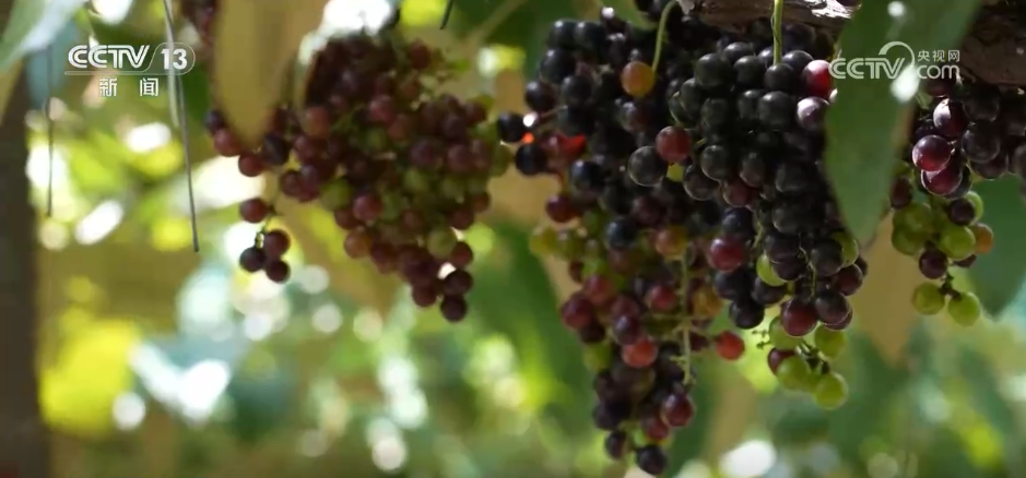 在廣西羅城仫佬族自治縣,在石縫間扎根的毛葡萄綴滿藤蔓,高山上的黃金百香果壓彎枝頭,勾勒出一幅豐收美景圖。
