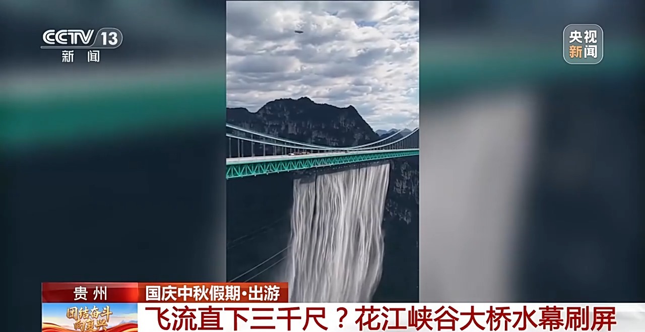 就在前兩天,貴州花江峽谷大橋建成通車。大橋調(diào)試水幕的現(xiàn)場(chǎng)畫面,如“飛流直下三千尺”的瀑布,在社交媒體上刷了屏。今年國慶中秋假期,這座“橫豎都第一”的大橋吸引了很多游客慕名而來。這一路的游玩有什么好推薦?