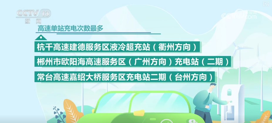 高速單站充電次數(shù)最多的是杭千高速建德服務(wù)區(qū)液冷超充站(衢州方向)、郴州市歐陽海高速服務(wù)區(qū)(廣州方向)充電站(二期)、常臺(tái)高速嘉紹大橋服務(wù)區(qū)充電站二期(臺(tái)州方向)。