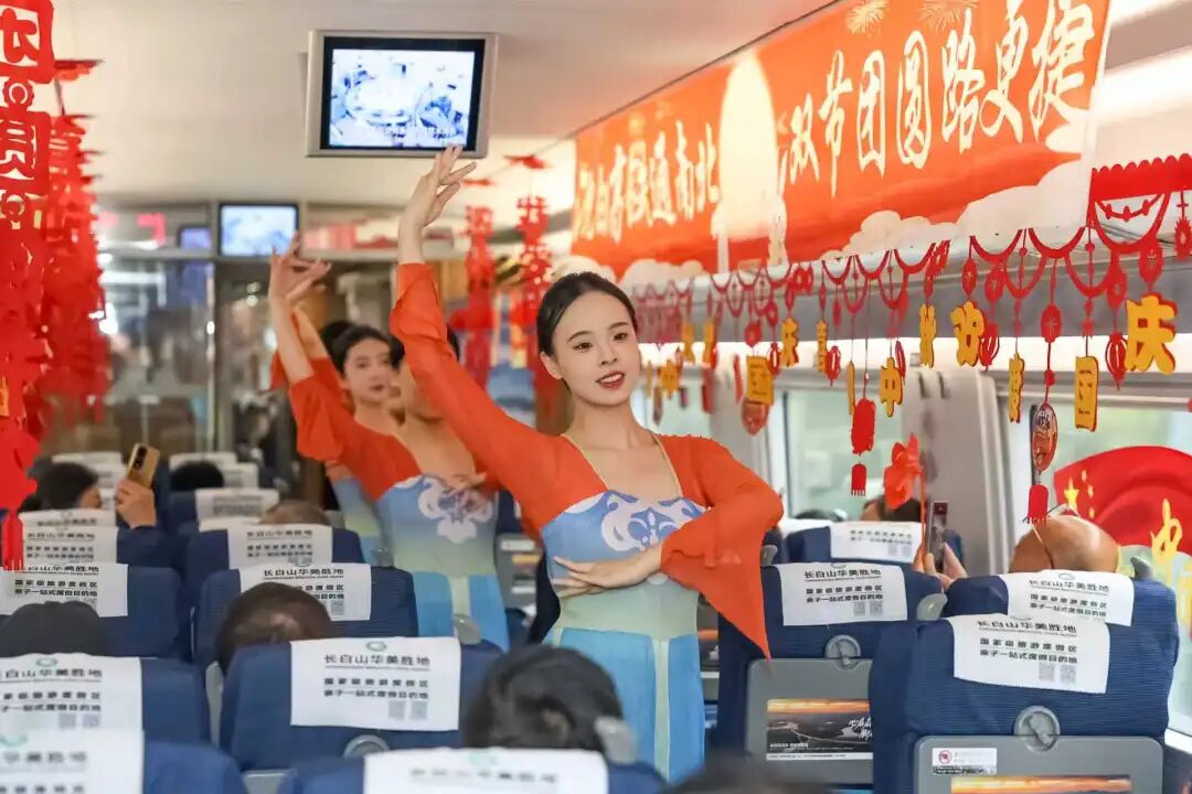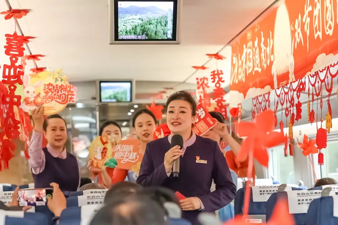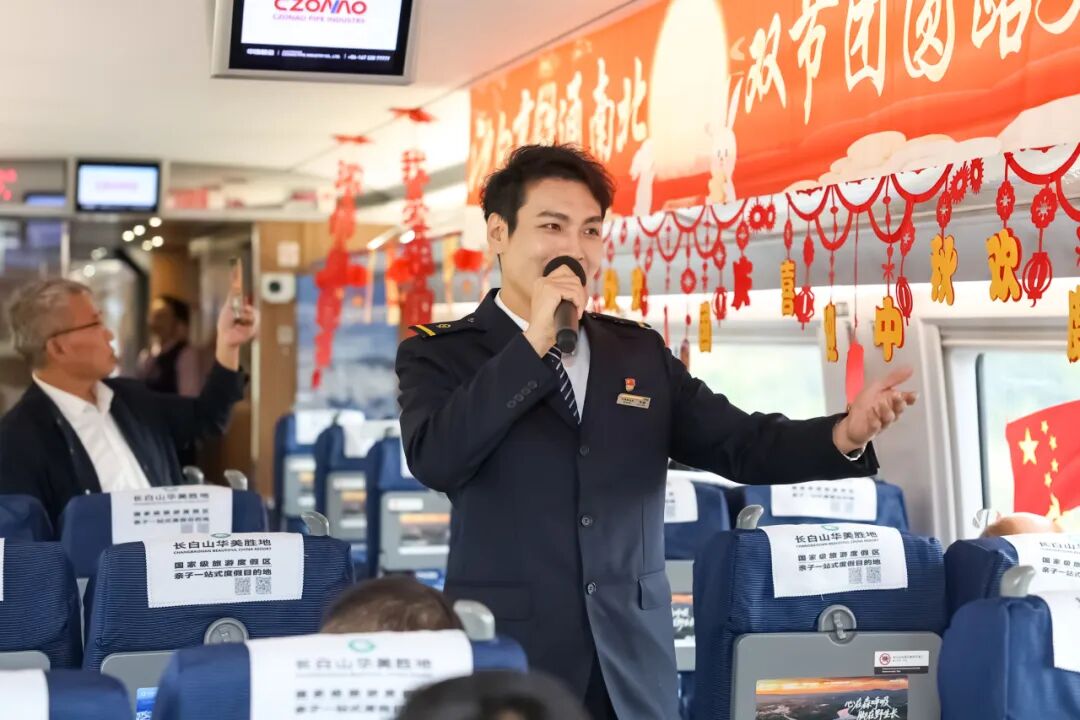 沈佳高鐵沈白段開通運(yùn)營(yíng)后,迎來(lái)第一個(gè)國(guó)慶中秋假期。長(zhǎng)春客運(yùn)段在長(zhǎng)春至青島北的G3565次列車上舉辦“‘我的鐵路風(fēng)景’——沈白高鐵通南北 雙節(jié)團(tuán)圓路更捷”列車聯(lián)歡活動(dòng)。