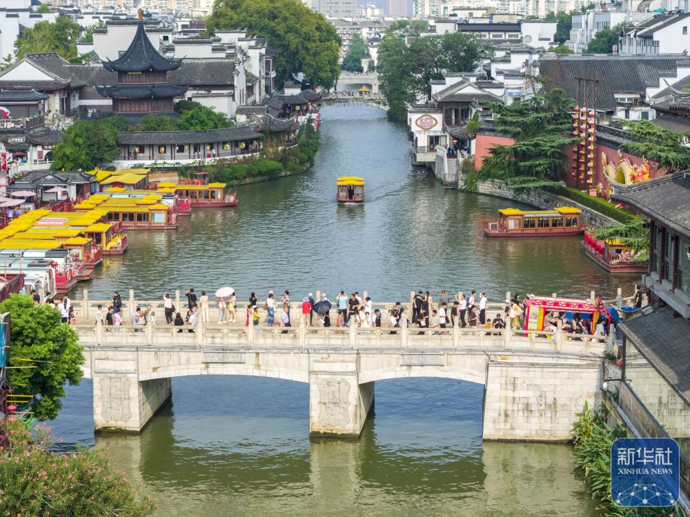 ↑ 10月5日,人們在南京夫子廟景區(qū)游玩(無人機(jī)照片)。新華社發(fā)(史俊攝)