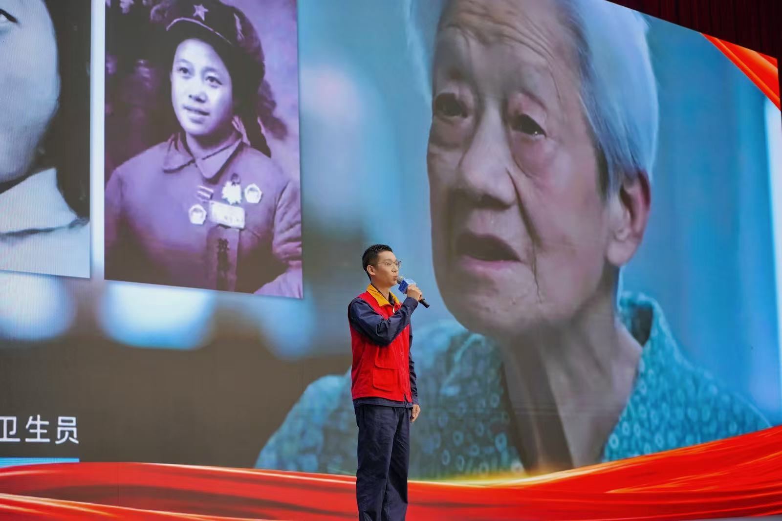 “上甘嶺坑道里的烽火雖已遠(yuǎn)去,但英雄的故事始終在照亮我們的初心?!眹?guó)家電網(wǎng)孝感供電公司的紅領(lǐng)志愿宣講員劉航,以奶奶王清珍——電影《上甘嶺》中“王蘭”原型的革命經(jīng)歷,為現(xiàn)場(chǎng)點(diǎn)亮了第一束“信仰之光”。