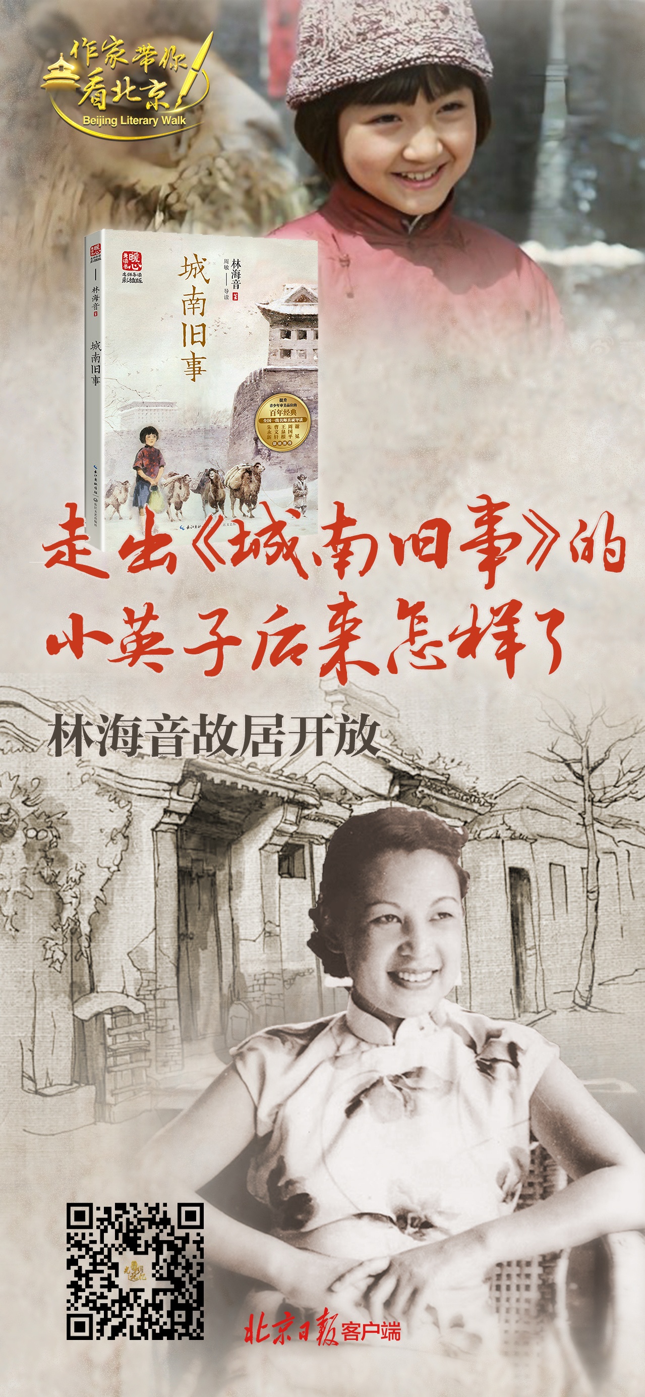 上個世紀50年代,林海音以自己在北京城南的童年生活為背景,創(chuàng)作出了帶有強烈自傳色彩的小說《城南舊事》,這本書具有獨特的魅力和永恒的價值,“英子的鄉(xiāng)戀”以親切的京味兒語言,寫出了老北京的色、香、味。那刻骨銘心的鄉(xiāng)思和沉甸甸的懷念,滲透在每一滴筆墨中。1983年,基于小說改編的同名電影上映,打動了更多人的心弦。