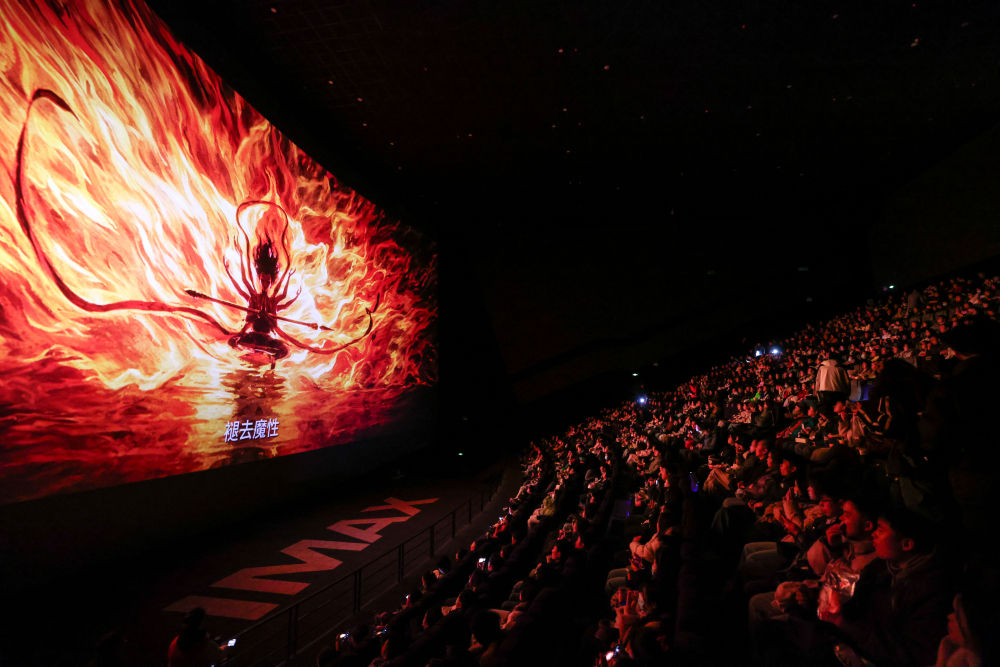 2025年2月25日,觀眾在貴州省貴陽(yáng)越界影城IMAX影廳內(nèi)觀看電影《哪吒2》。新華社記者 歐東衢 攝