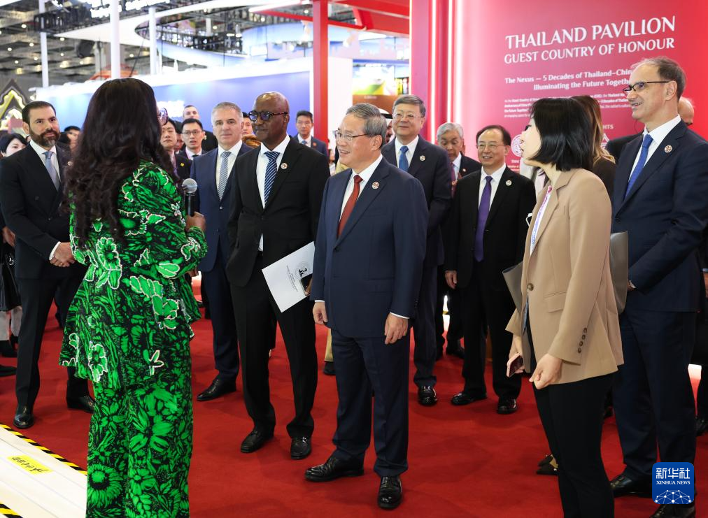 開幕式前,李強(qiáng)參觀了企業(yè)展。開幕式后,李強(qiáng)同與會(huì)外國(guó)領(lǐng)導(dǎo)人共同巡館。