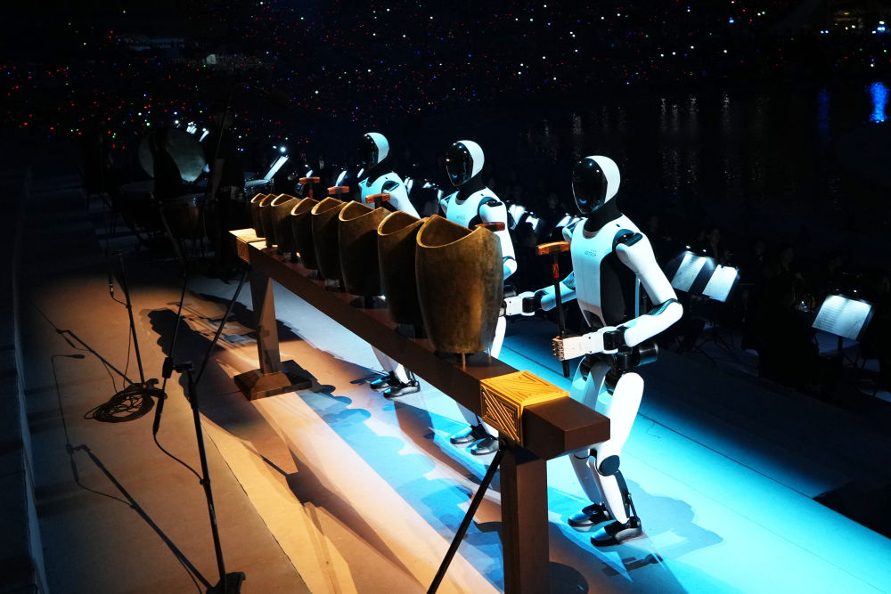 開幕式表演中的這一幕給觀眾留下深刻印象——三個(gè)工業(yè)人形機(jī)器人敲響千年前的中國古代樂器青銅句鑃,展開了一場未來與歷史的對(duì)話。談到此創(chuàng)意,十五運(yùn)會(huì)開幕式藝術(shù)總監(jiān)陳維亞表示:“這一點(diǎn)我們很自信,抓得好、抓得精彩、抓得有特色?!?/p>