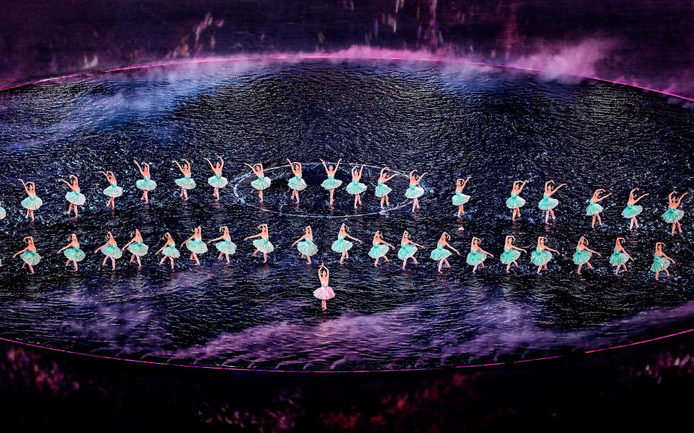 郎昆介紹,開幕式在空間敘事、藝術(shù)表達(dá)等方面都體現(xiàn)了三地文化交融。主舞臺(tái)直觀呈現(xiàn)“同心圓”造型,環(huán)形舞臺(tái)周邊是廣闊的水面,運(yùn)用前沿的“虛實(shí)結(jié)合”技術(shù),讓珠江、維多利亞港、伶仃洋的水波在場地中交匯奔流。這不僅是地理水系的相連,更是三地同源共流的文化血脈與手足親情的象征。