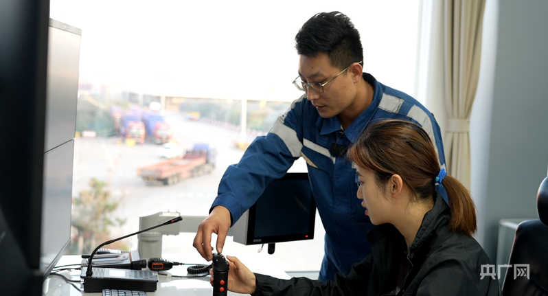 鏡頭從岸線來到西聯(lián)公司件雜貨數(shù)智中心,這里是整個(gè)碼頭的大腦。落地窗外,“中遠(yuǎn)海運(yùn)長(zhǎng)青”輪穩(wěn)穩(wěn)靠泊。數(shù)智中心內(nèi),工作人員對(duì)著電腦屏幕進(jìn)行操控,上面顯示著碼頭各處的實(shí)時(shí)畫面,有的電腦前還有方向盤,電腦桌下還有剎車、油門。“這里是操控IGV的,通俗來說就是自動(dòng)駕駛的運(yùn)輸車,在這個(gè)操作臺(tái)上,就可以實(shí)現(xiàn)遠(yuǎn)程監(jiān)控,有點(diǎn)像打游戲?!鼻鄭u港西聯(lián)公司操作部副經(jīng)理孫長(zhǎng)杰介紹。