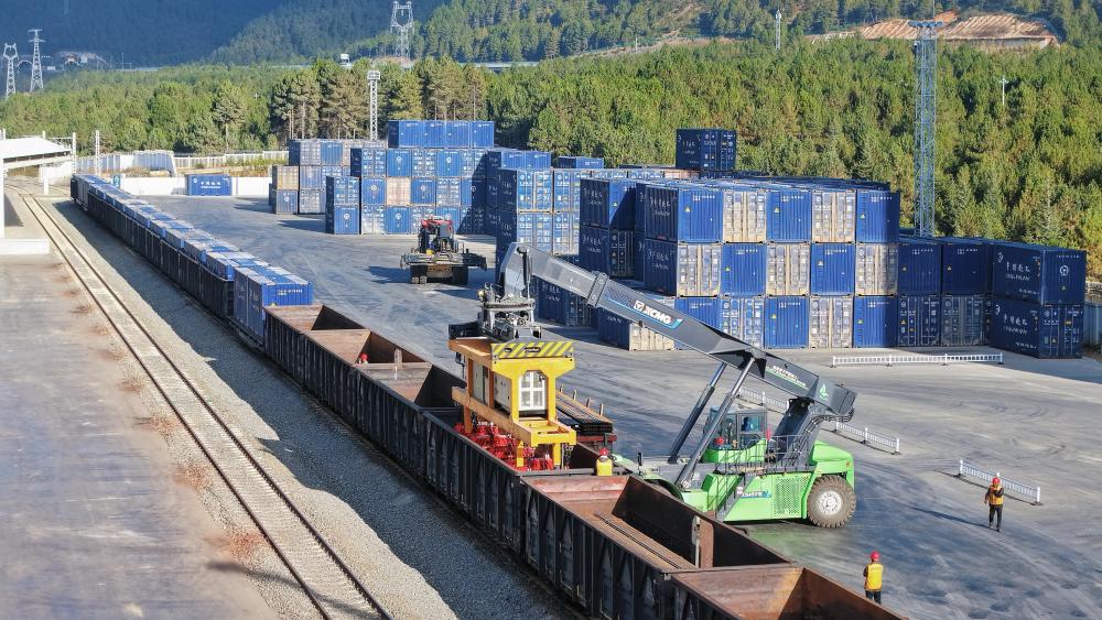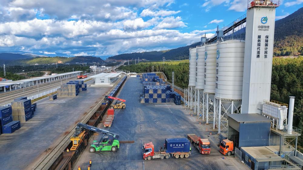 這是11月21日拍攝的云南迪慶藏族自治州小中甸站貨場(chǎng)(無人機(jī)照片)。