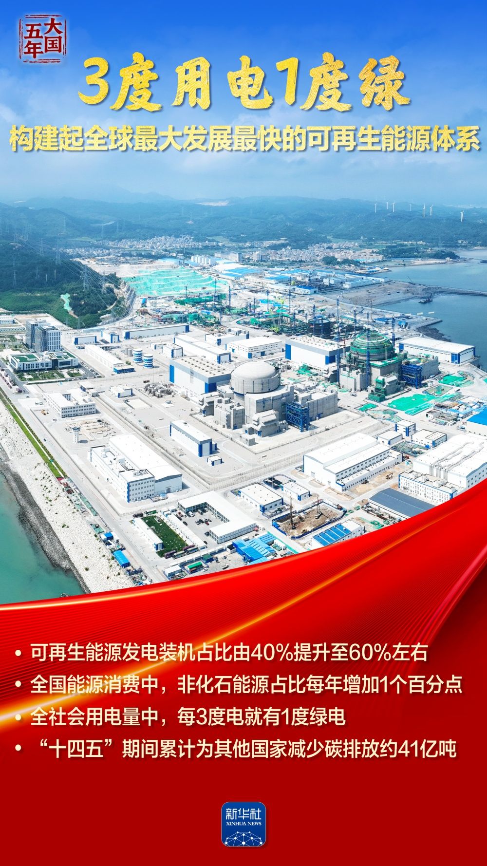 全社會(huì)用電量中,每3度電就有1度綠電;風(fēng)電光伏裝機(jī)歷史性超過火電,新能源發(fā)電增量占全國新增發(fā)電量近一半;全國統(tǒng)一電力市場加快構(gòu)建,塞北的風(fēng)點(diǎn)亮灣區(qū)的燈……“十四五”期間,我國能源建設(shè)逐“綠”向“新”,筑牢能源安全的堅(jiān)實(shí)底座,繪就民生幸福的溫暖底色,夯實(shí)“雙碳”目標(biāo)的實(shí)現(xiàn)基礎(chǔ)。