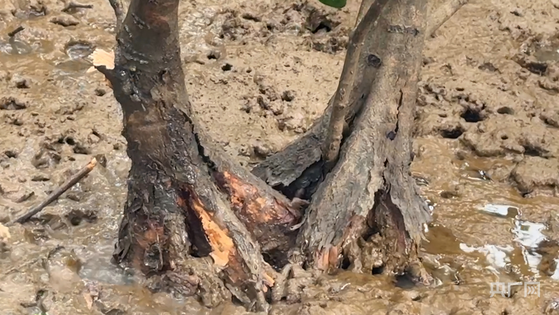 耐寒的紅樹品種根系已逐步適應玉環(huán)沿海水土(央廣網(wǎng)記者 李曉曉 攝)