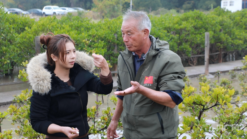 吳昌根女兒今年加入保護紅樹林隊伍,圖為吳昌根在給女兒講解紅樹林育苗知識(央廣網(wǎng)發(fā) 羅凱文 攝)
